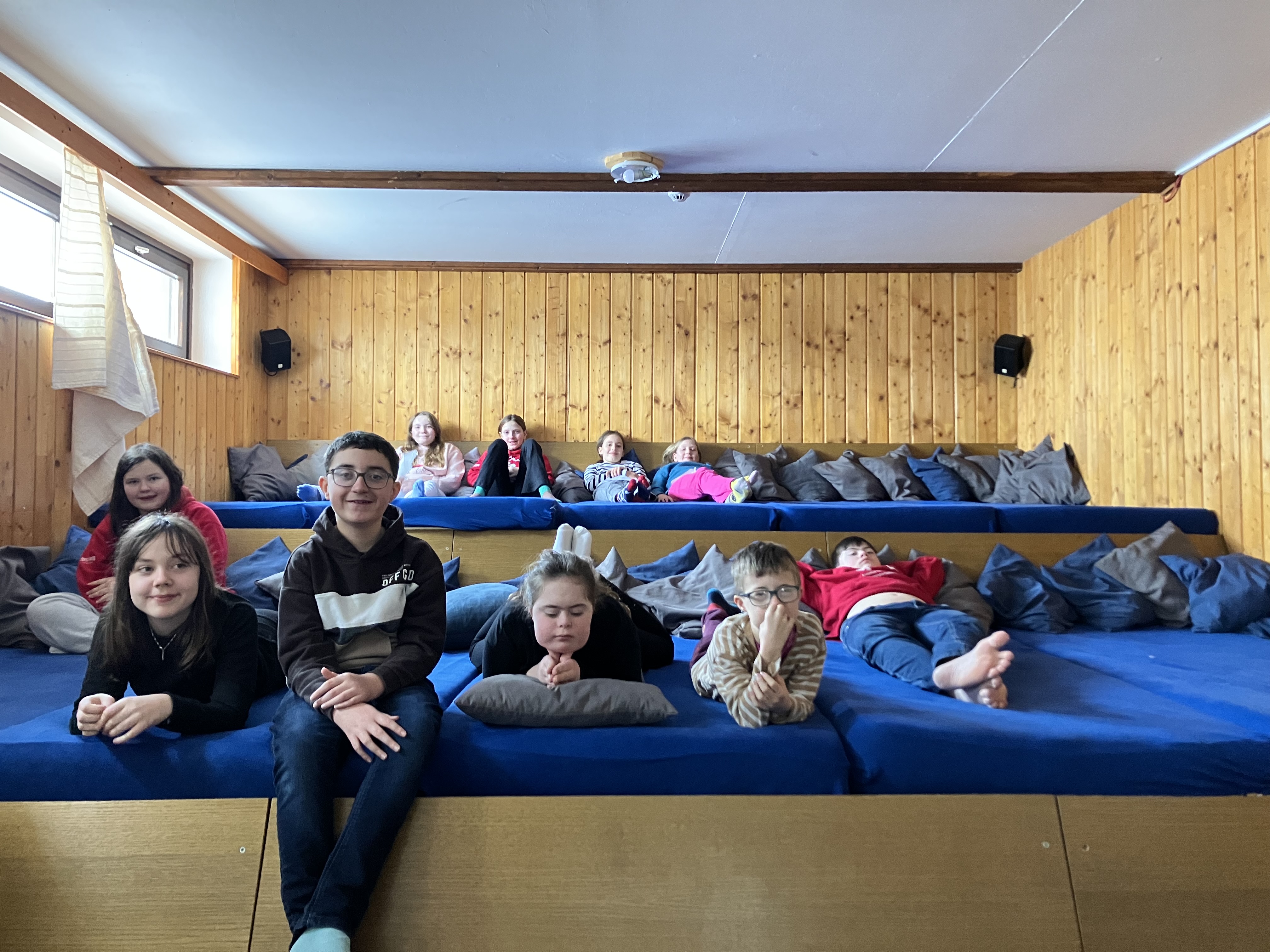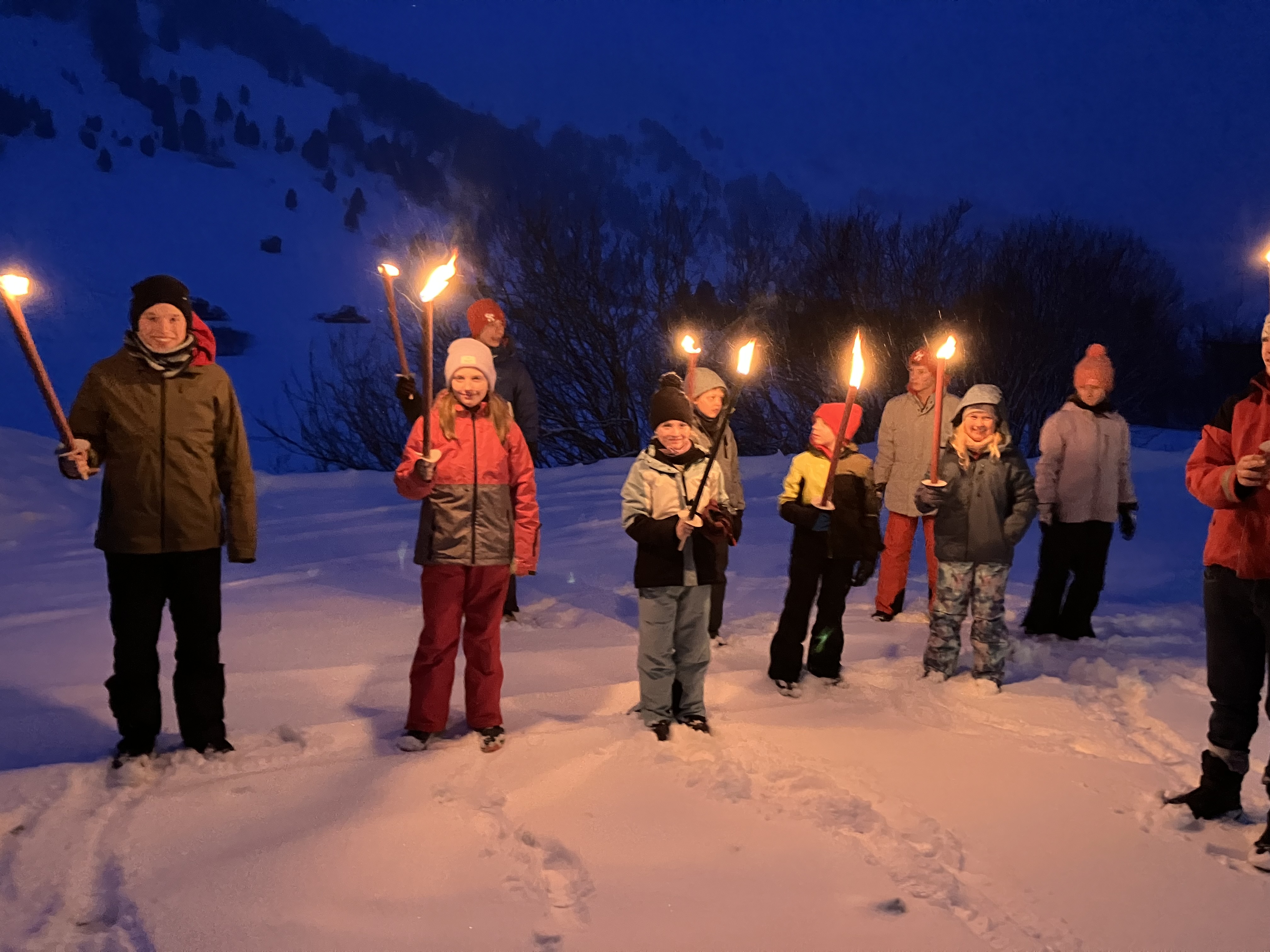 Wenn die Schüler und Schülerinnen nicht gerade eine Piste runtergefahren sind, konnten sie mit ihren Freunden im Zimmer chillen und sich ausruhen. Die Kinder durften ein paar Süßigkeiten mitnehmen, die gemeinsam vernascht wurden. Als Highlight wurde an einem Abend eine Fackelwanderung organisiert. . Auch dafür musste man sich wieder dick einpacken. An einem anderen Tag machten die Kinder mit ihren Lehrern abends Disco und hatten sehr viel Spaß. An einem weiteren Abend gab es einen Filmabend. Das war cool. Gemeinsam macht alles gleich viel mehr Spaß. „Es ist so schön mit euch!“, sagte ein Schüler. Es wurde auch eine Aprés-Ski-Party und ein Skirennen, bei dem es Kiosk-Gutscheine zu gewinnen gab, veranstaltet. Worauf sich alle gefreut haben, war das Mittagessen am letzten Tag auf der Hütte. Das Essen hat lecker geschmeckt. Alle Schüler und Schülerinnen sind am 06.02. nachmittags wieder angekommen und haben sich auf ihre Eltern gefreut.
